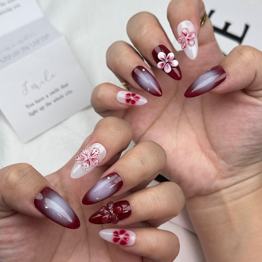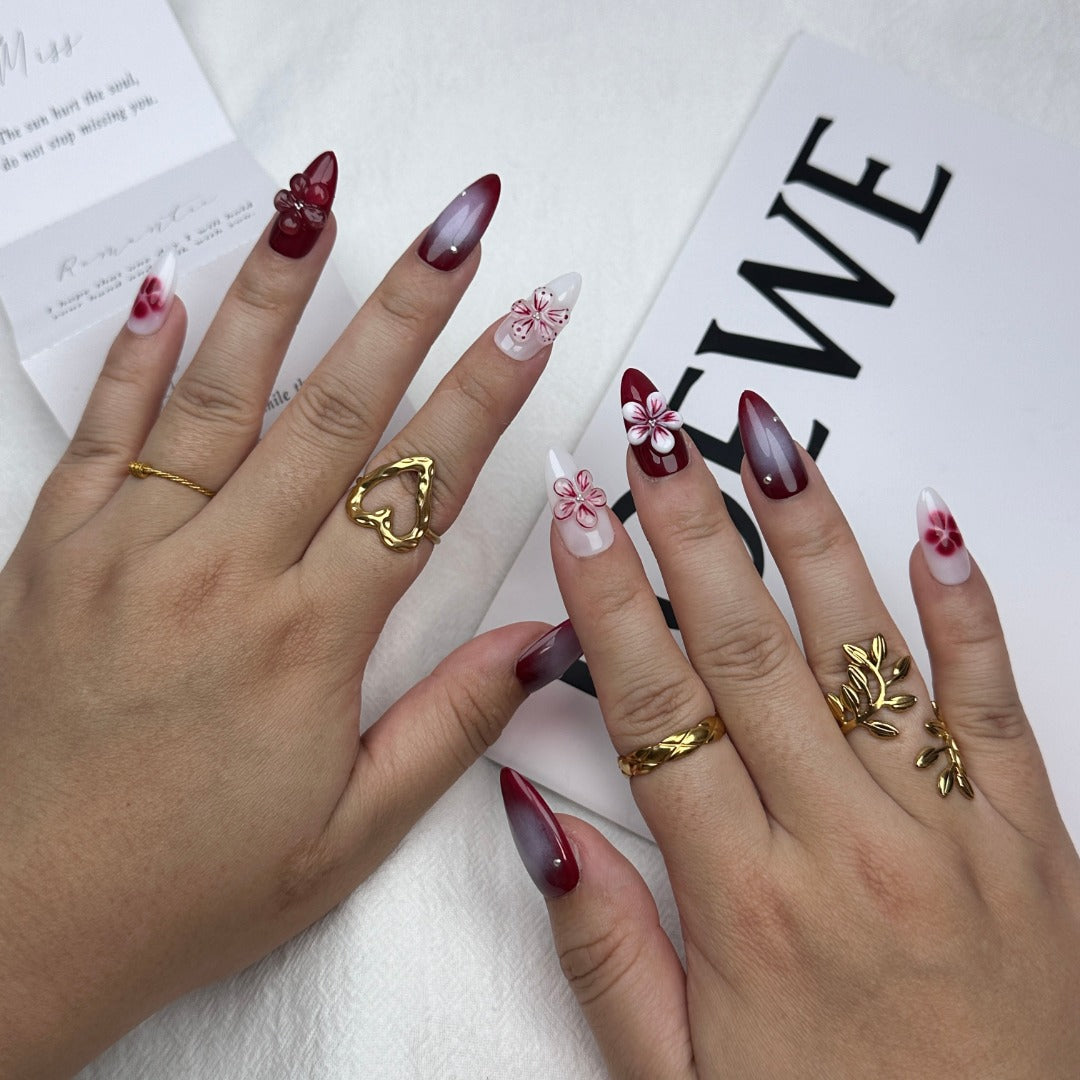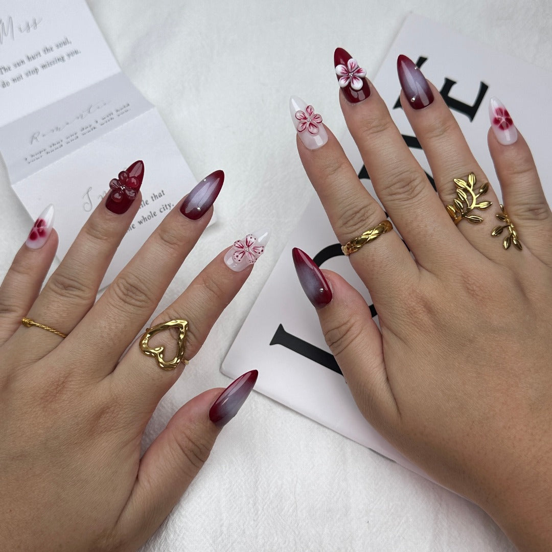 Each set has 10 pcs of Press-on nails and a Free application kit(Nail glue, Sticky tab, Nail file, and cuticle pusher). Within minutes- you'll have nails fit for a Queen!