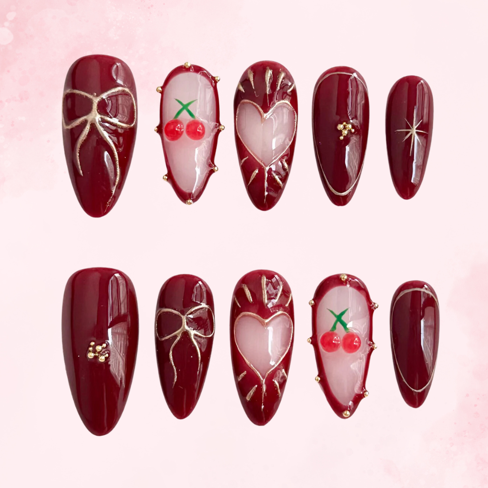 Each set has 10 pcs of Press-on nails and a Free application kit(Nail glue, Sticky tab, Nail file, and cuticle pusher). Within minutes- you'll have nails fit for a Queen!