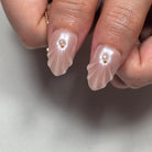 5. Press the Press-on Nail onto the sticky tad, starting from the cuticle and working towards the tip.