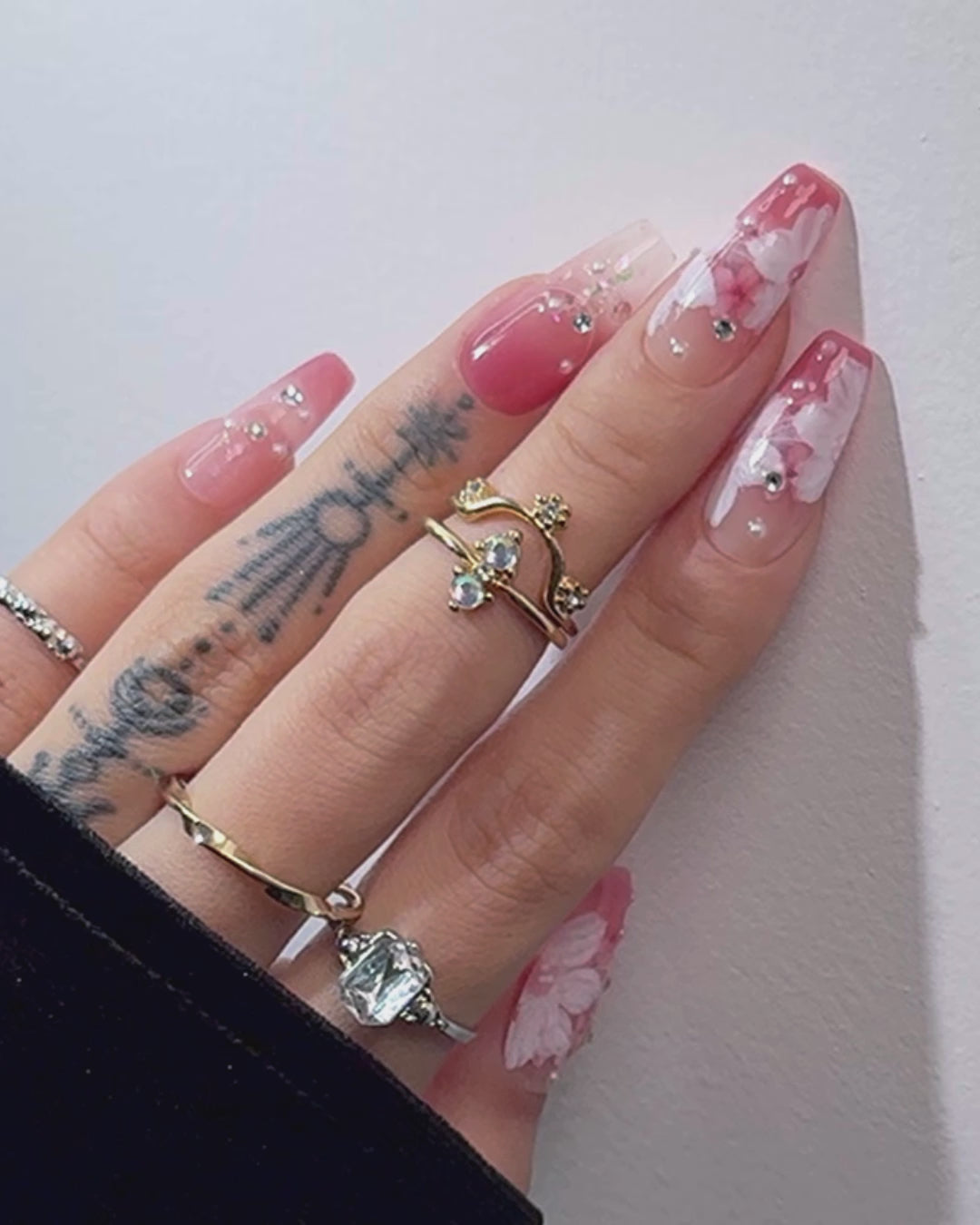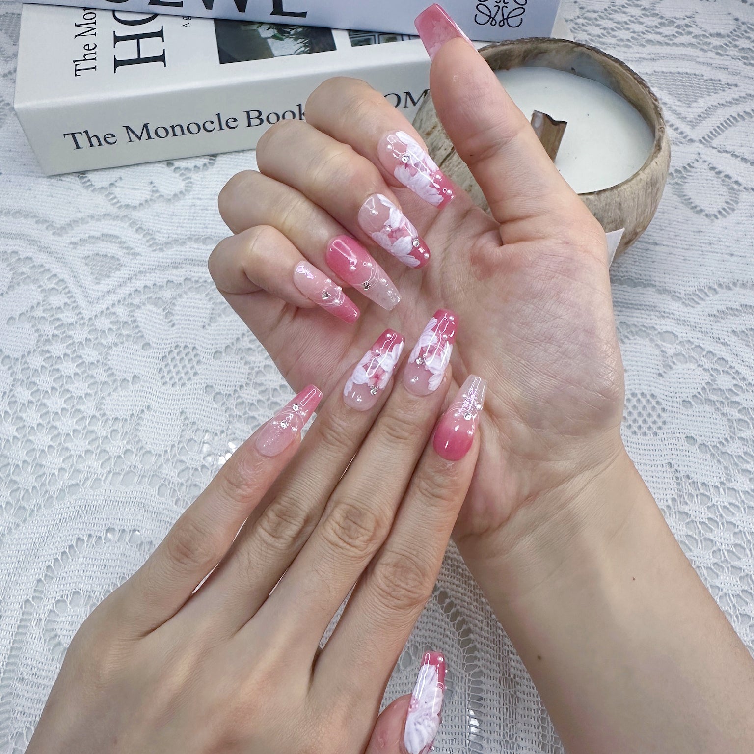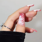 Blossom Sakura Long Coffin Pink Press-on Nails | Handmade Nails