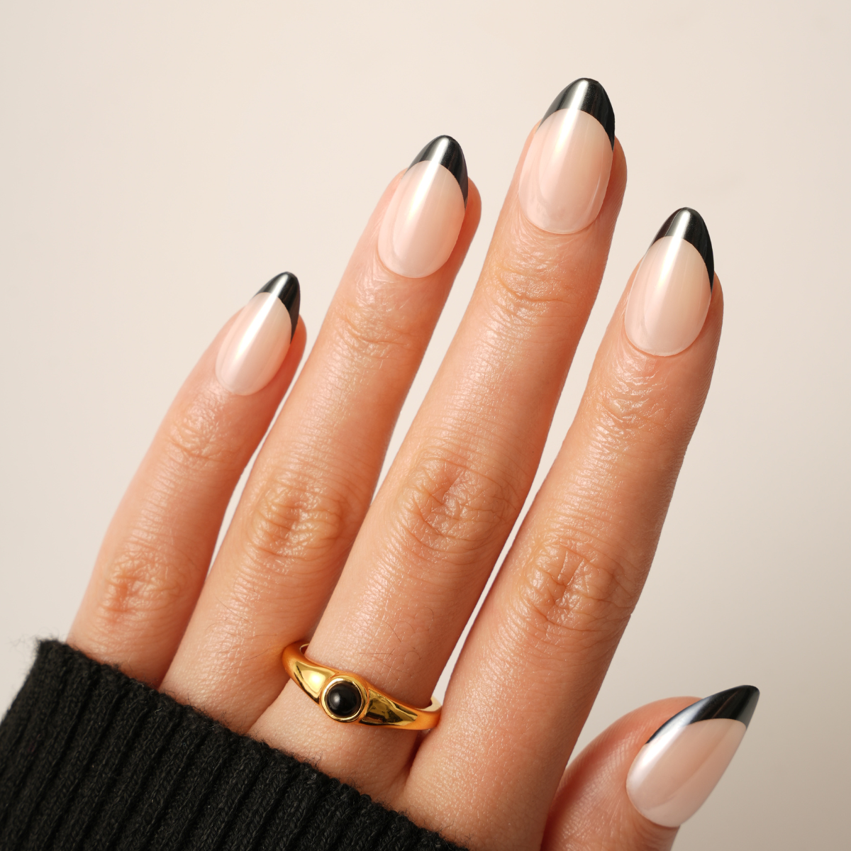 Bold meets chic with these black-tipped French nails! 🖤✨ Sleek, stylish, and perfect for any occasion. Elevate your look with this subtle yet striking design! 💅