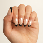 Bold meets chic with these black-tipped French nails! 🖤✨ Sleek, stylish, and perfect for any occasion. Elevate your look with this subtle yet striking design! 💅