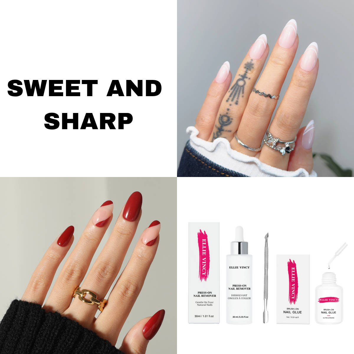 Complete with nail glue, remover, and prep tool, Sweet and Sharp is made for effortless switching between soft and strong.
