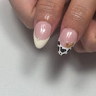 - Press the Press-on Nail onto the sticky tad, starting from the cuticle and working towards the tip.