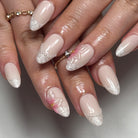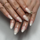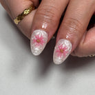 5. Press the Press-on Nail onto the sticky tad, starting from the cuticle and working towards the tip.