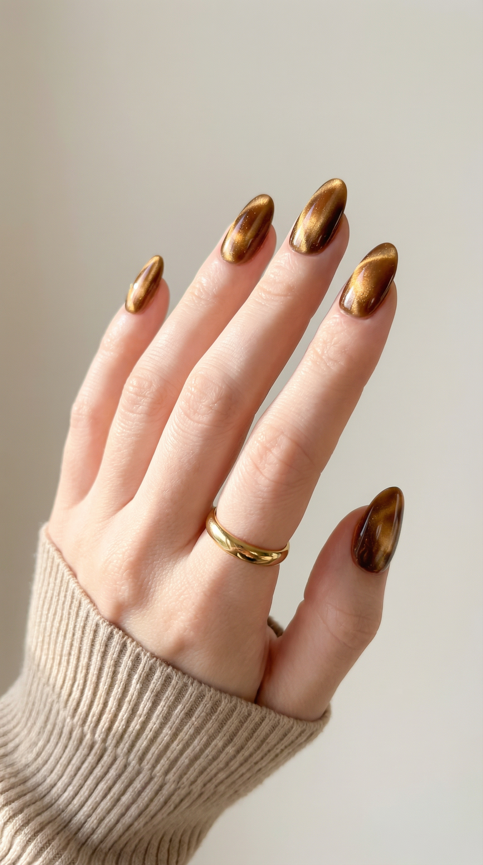 Molten Amber Short Almond Glue on Press On Nails