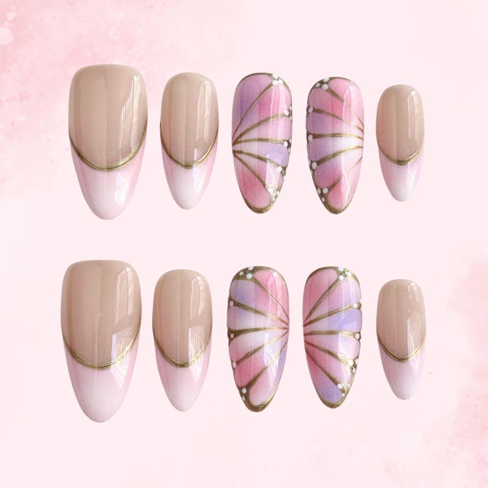 Each set has 10 pcs of Press-on nails and a Free application kit(Nail glue, Sticky tab, Nail file, and cuticle pusher). Within minutes- you'll have nails fit for a Queen!