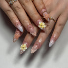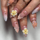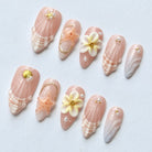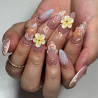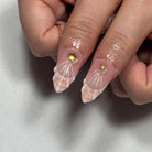 - Press the Press-on Nail onto the sticky tad, starting from the cuticle and working towards the tip.
