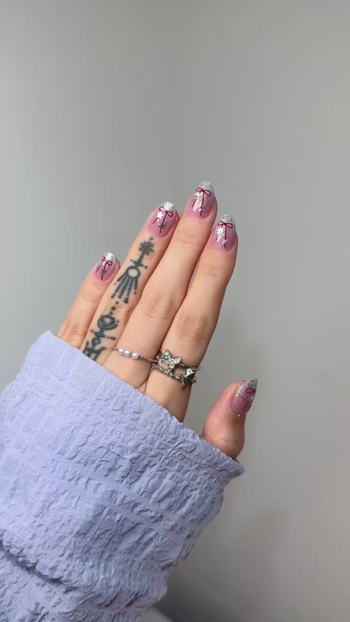 Ellie Vincy Press on Glue Nails-Festive Starry Bow|Christmas