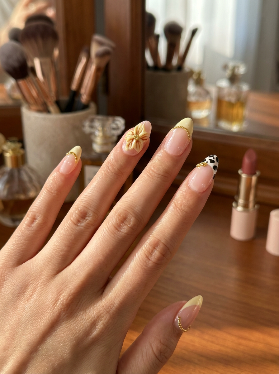 Ivory Bloom Almond Luxus-Klebe-auf-Press-on-Nägel