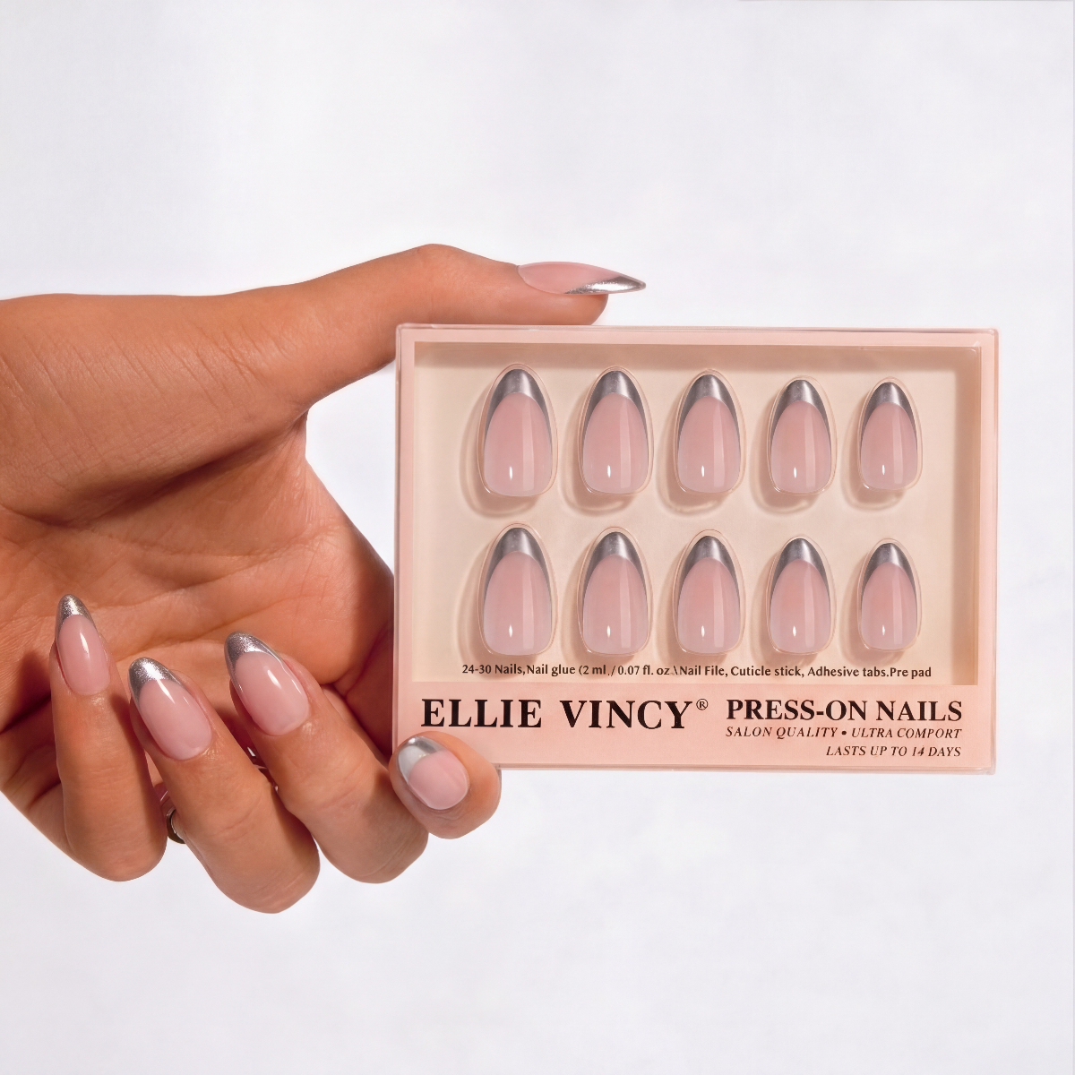 Silver French Glue on Press on Nails