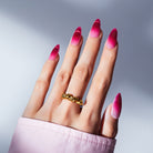 5. Attach Press-On Nail: Press the press-on nail onto the sticky pad, starting from the cuticle and moving towards the tip for a secure fit. 💖👑